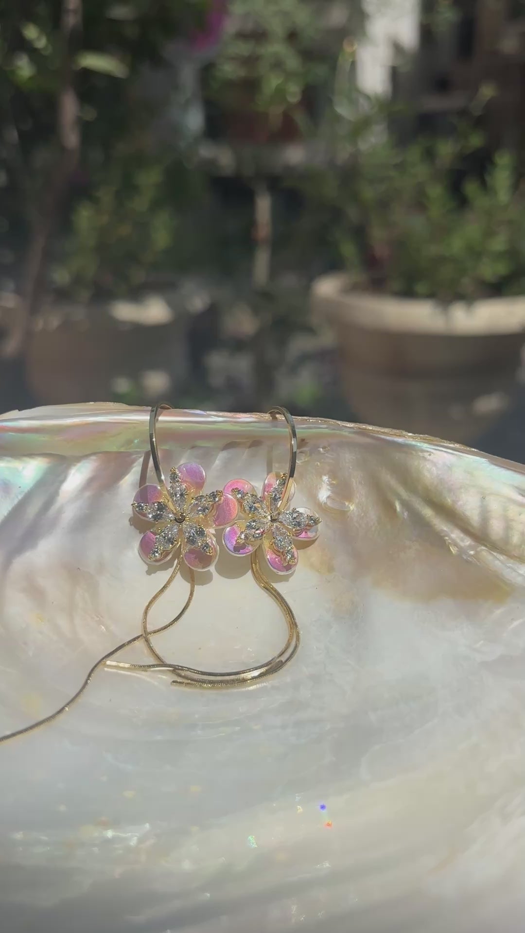 Holographic Double Layered Flower Hoop Earrings - with American Diamonds